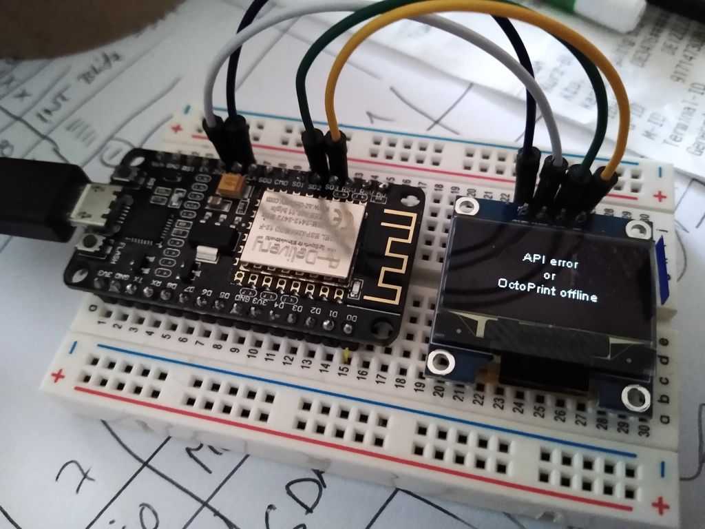 Projekt der Woche: Ein kleines Display für die Küche, das den OctoPrint-Status anzeigt. Wenn der Printer Monitor von Qrome schon zu groß/mächtig/unübersichtlich ist, hier die ganz spartanische Text-Version...