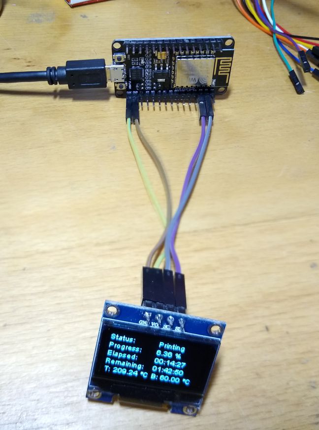 Der Monitor holt über die REST-API die Daten von OctoPrint und zeigt sie an. Ist OctoPrint offline, wird das OLED herabgedimmt. Rudimentär sind im Code NTP und Datum/Uhrzeit vorhanden, aber unbenutzt.